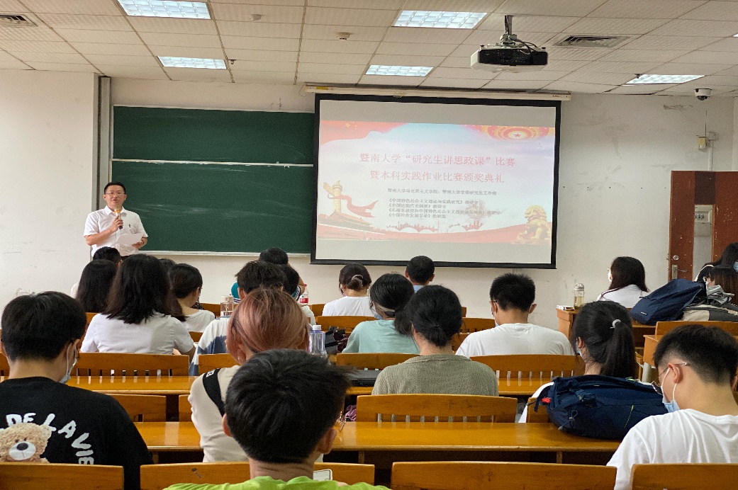 2021年9月23日,暨南大学马克思主义学院、暨南大学党委研究生工作部联合举办的第二届“研究生讲思政课”比赛决赛在校本部教学楼505教室顺利举行。暨南大学党委研究生工作部部长史学浩、党委宣传部副部长罗发龙、马克思主义学院教授史军、马克思主义学院副教授何小勇、马克思主义学院2020级博士研究生张宝丽担任本次活动的评委。马克思主义学院副教授吴昱担任本次比赛的主持人。