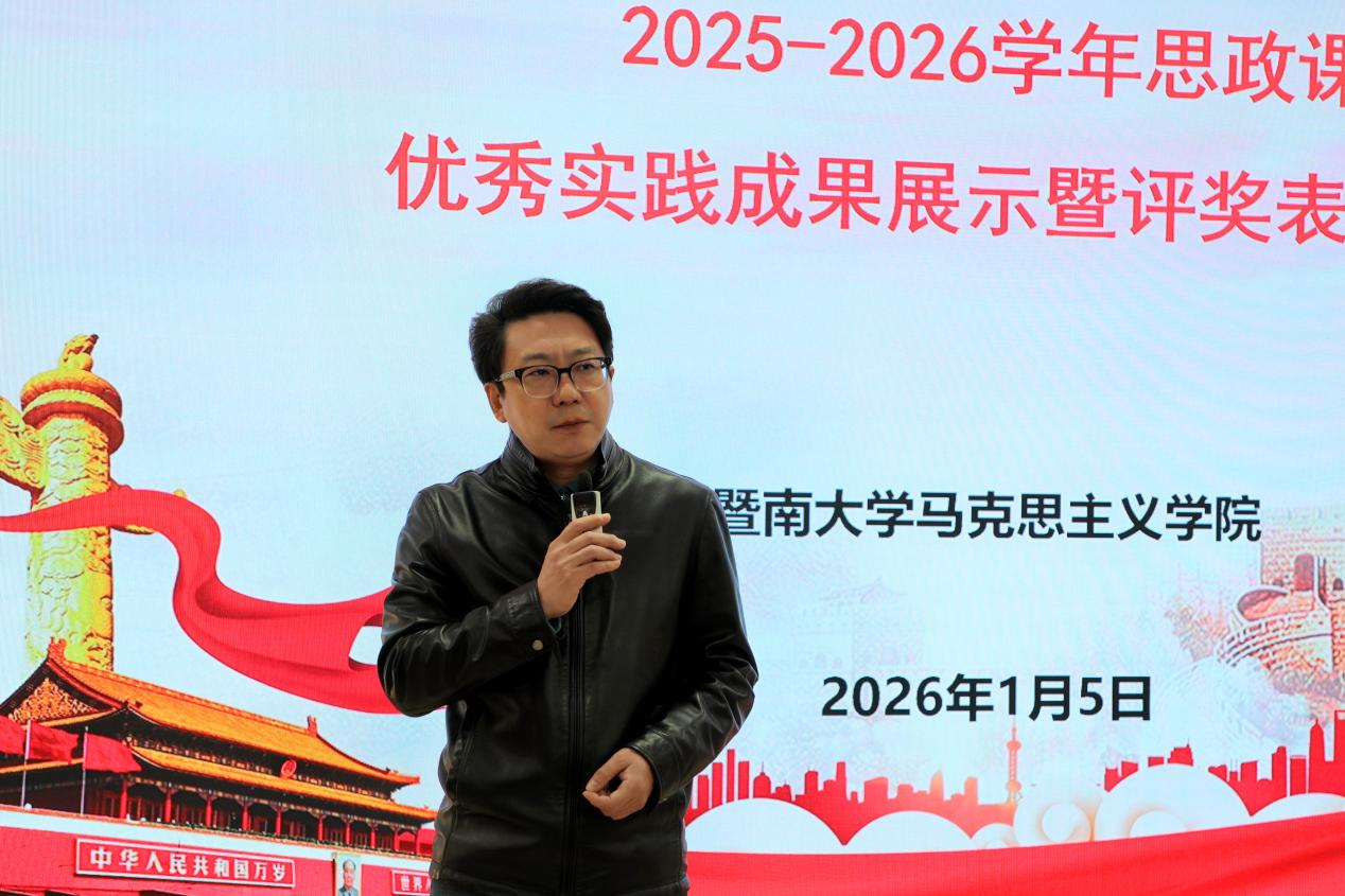 1月5日上午,为深入贯彻落实习近平总书记关于思政课建设的重要论述,将习近平总书记对广东的系列重要讲话、重要指示精神及广东实践成果切实转化为育人优势,暨南大学马克思主义学院在石牌校区成功举办2025-2026学年思政课优秀实践成果展示暨评奖表彰大会。本次活动由“马克思主义基本原理”教研中心承办,学院教师田明、江传月、林子华、何涛、彭文平、宋婉贞、张一等担任评委。